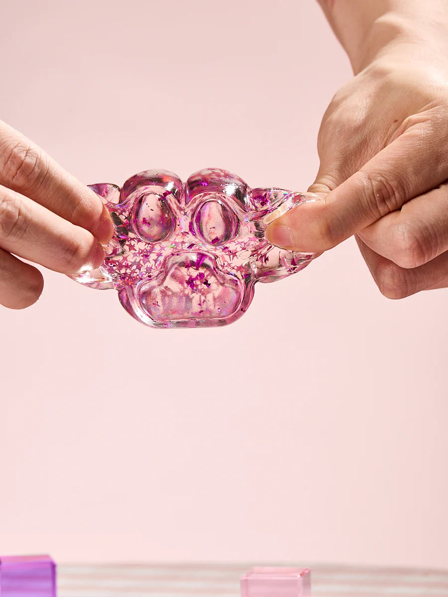 Foil Flakes Fuchsia Paw Taba Squishy